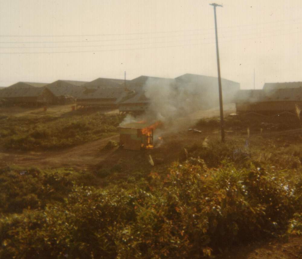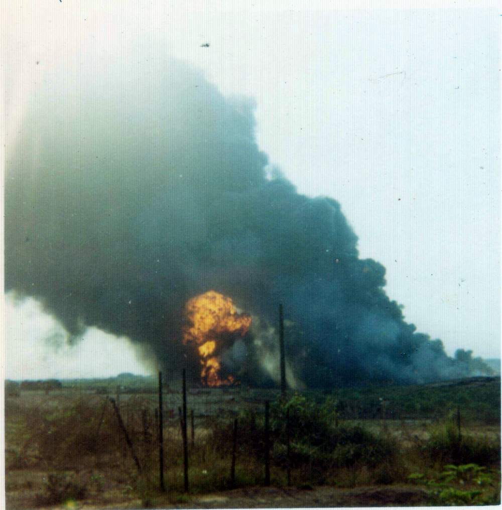 Dong Ha, 1970 NVA rockets started this fire at the fuel depot |