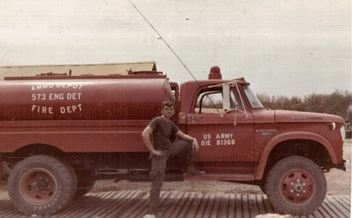 Bill Nink served as a 51M (fire fighter) with the 114th Engineer Fire Fighting Detachment in Vietnam. Shown here are several 530 Bs and a water tanker at Fire Support Base Mace. Bill can be contacted at: ninkwilliam@sbcglobal.net |
