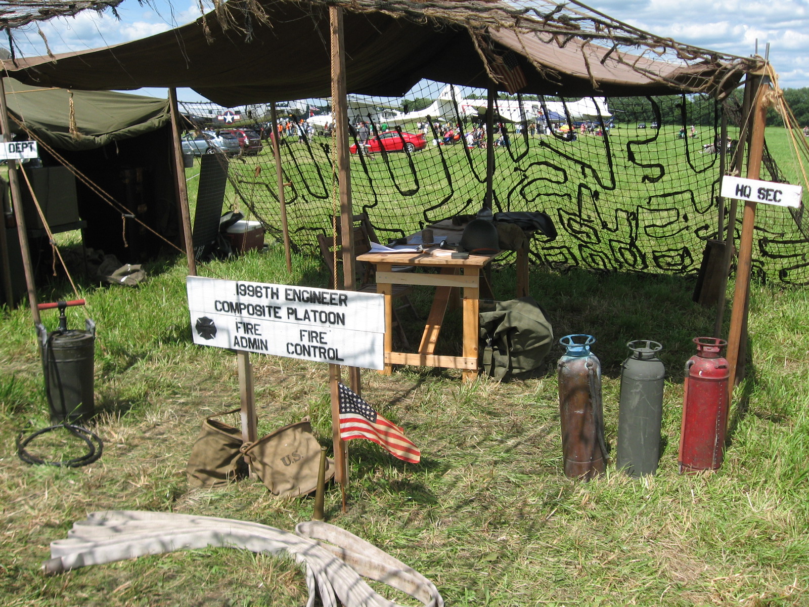Our friend Zach Mateja is a WWII reenactor and member of the Airmen's Preservation Society. Zack recreates the 1996th Engineer Aviation Fire Fighting Platoon at airshows and other events. Here is Zach manning the Headquarters Section of the 1996th at the Genesco Air Show in July of this year. It is hoped that sometime in the future the Corps of Engineers will issue the platoon a Class 135 crash truck. Thanks Zack for the pixs and a job well done. |